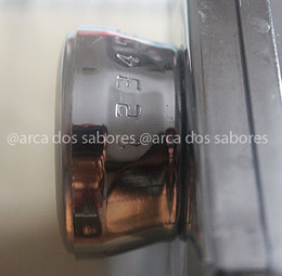 3º passo: Divido a bola em 2. Vou espalmar a 1ª bola com a palma da mão e inserir a massa (polvilhada com farinha) na máquina para estender. (numa posição larga, a posição 2)